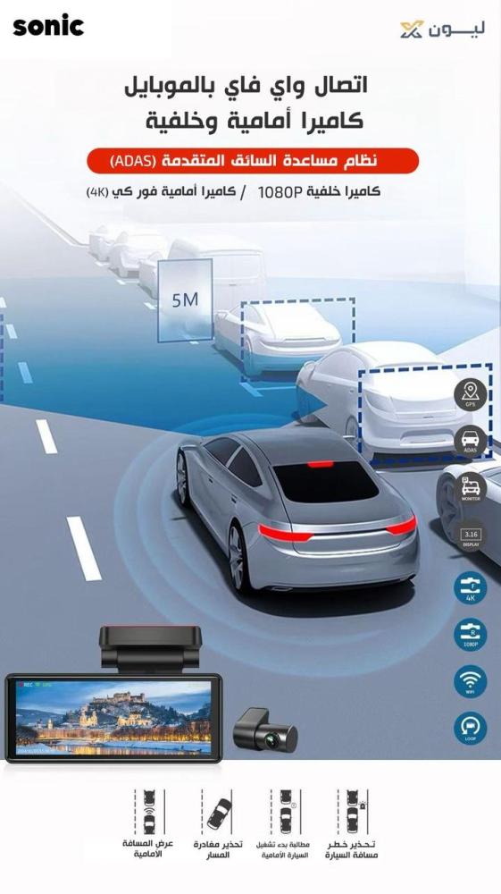 داش كام سونيك الاصدار الحديث Q9- امامي 4k وخلفي 1080P